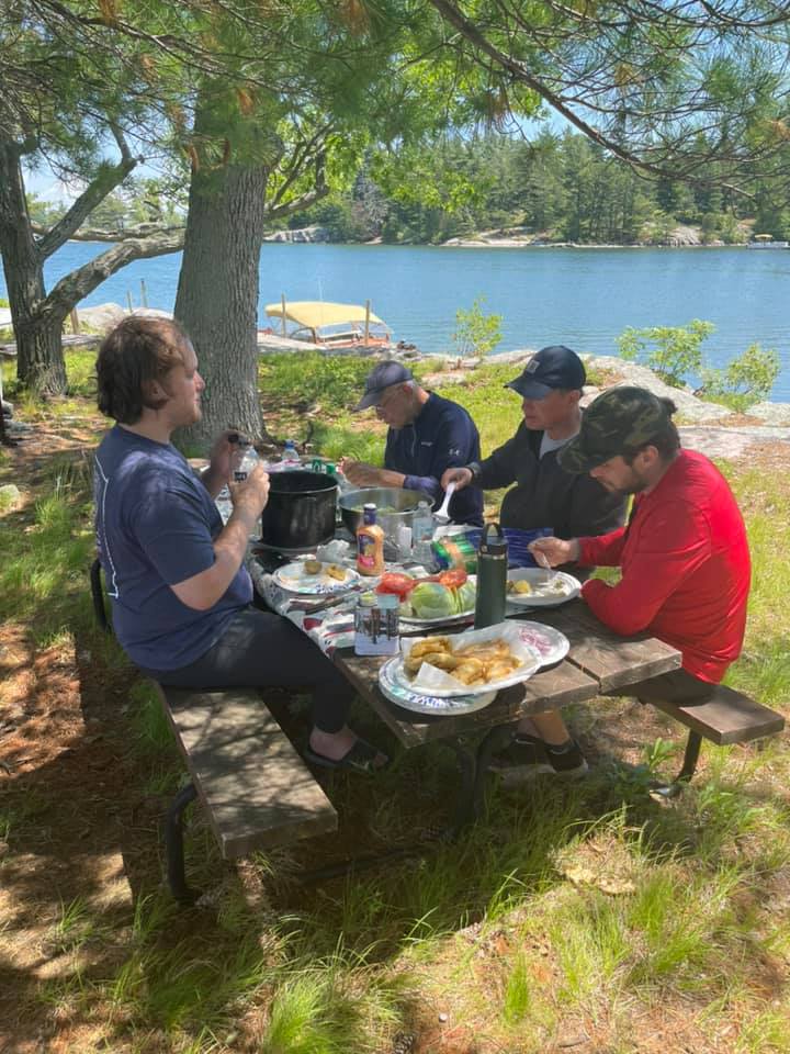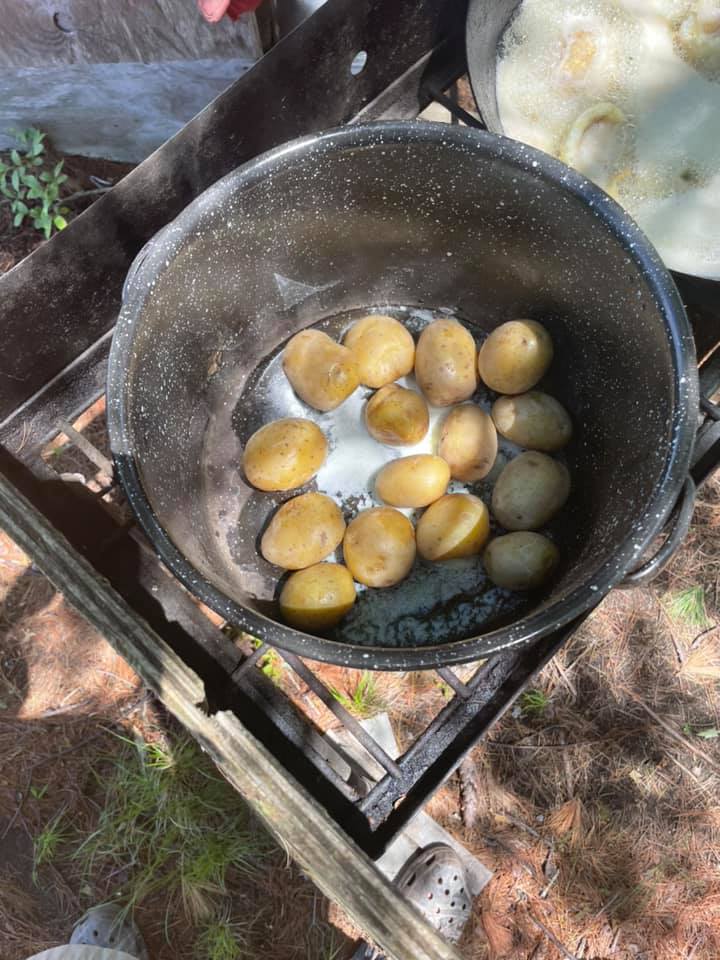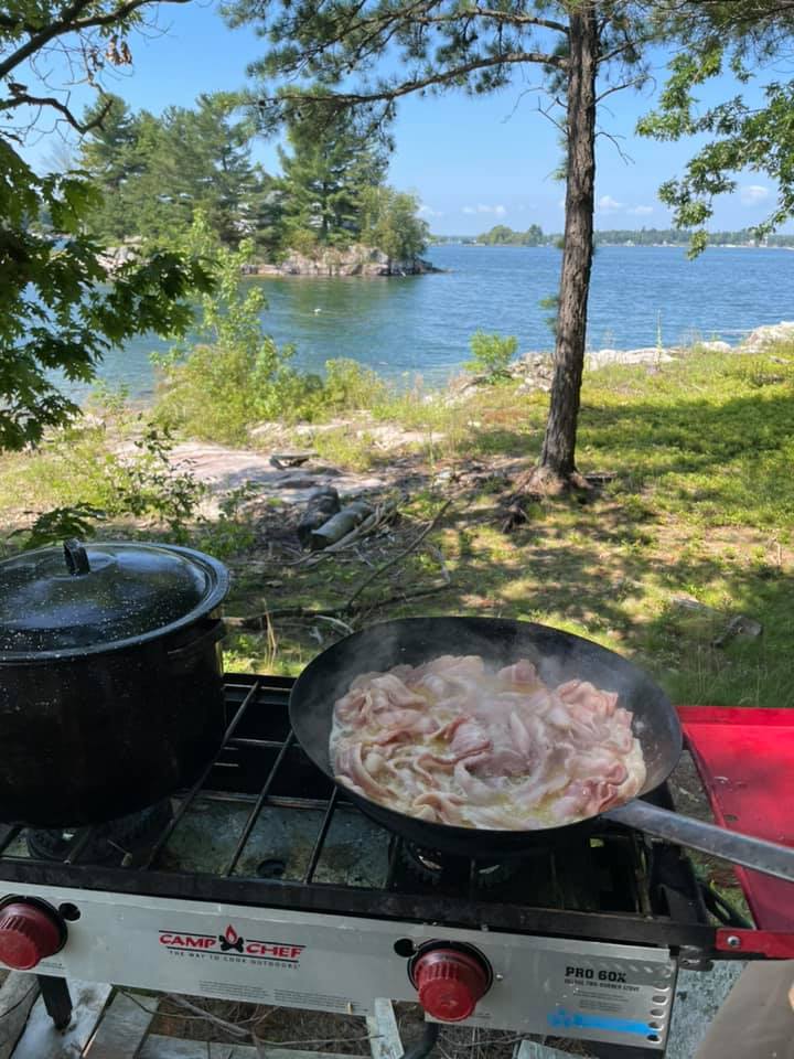 The traditional shore dinner dates back to the late 1800’s when oarsmen, now know as guides would row passengers in their skiffs to and from fishing grounds. Stopping midday at an island they would cook a noonday meal of the morning’s catch.